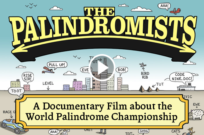 The Palindromists is a documentary delving into the world of palindromes–those peculiar words and phrases that read the same backwards and forwards. Explore palindromes in history and meet the world’s greatest palindromists as they see everything backwards while preparing for the World Palindrome Championship hosted by Will Shortz at the American Crossword Puzzle Tournament.