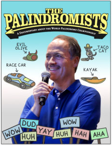 The Palindromists is a documentary delving into the world of palindromes–those peculiar words and phrases that read the same backwards and forwards. Explore palindromes in history and meet the world’s greatest palindromists as they see everything backwards while preparing for the World Palindrome Championship hosted by Will Shortz at the American Crossword Puzzle Tournament.